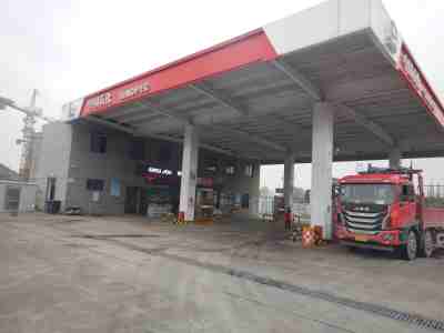 加油站設置汽油卸油和加油油氣回收系統。加油區設置加油罩棚,罩棚為輕鋼結構罩棚。罩棚下設置2臺三油品六槍和2臺雙油品四槍潛油泵式加油機(汽油加油槍帶油氣回收)以及1臺尿素液加注機;埋地油罐區設有4只30m³埋地臥式單層鋼制油罐(油罐均為非車道罐,設置在防滲罐池內),其中3只30m³汽油罐(分別為2只92#汽油罐和1只95#汽油罐),1只30m³柴油罐(儲存0#柴油),折合油罐總容積為105m³(柴油罐容積折半計入),根據《汽車加油加氣加氫站技術標準》GB50156-2021的相關規定,該加油站為二級加油站。