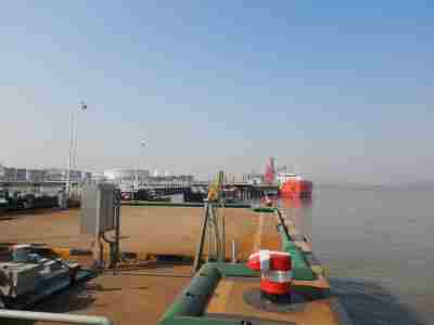 為了配套企業陸域危險化學品生產項目的原料和產品運輸,企業在廠區東側設有危險貨物裝卸碼頭。共設碼頭3個,自北向南依次分別為3萬噸級液體化工碼頭,5萬噸級、3千噸級油品碼頭以及3千噸級燃料油碼頭